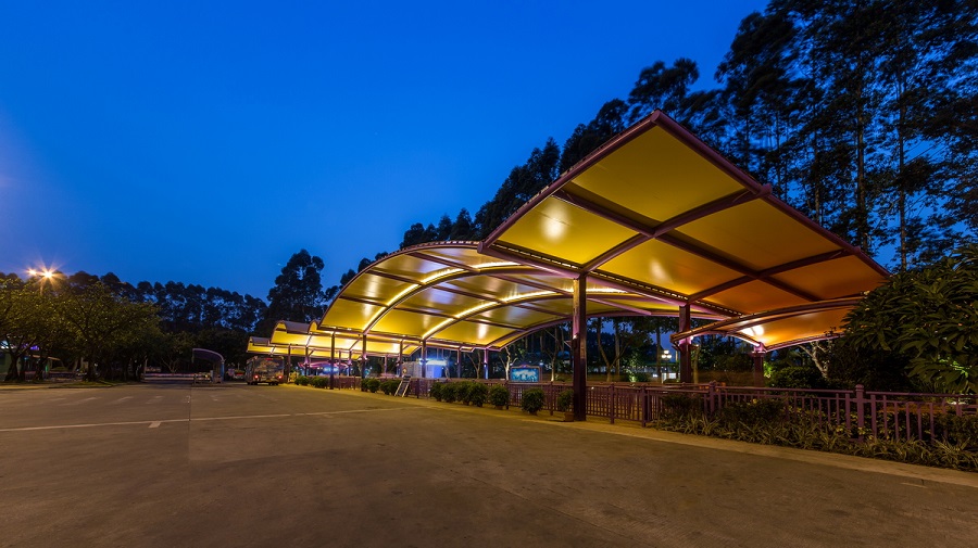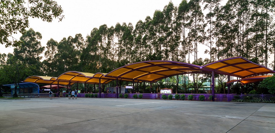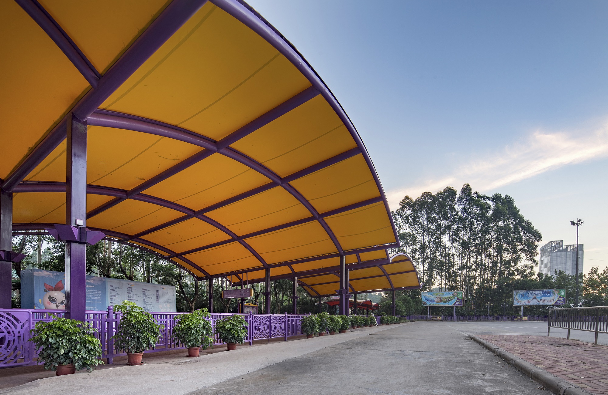 ▲彩色张拉膜顶棚具有引导游客流向的作用