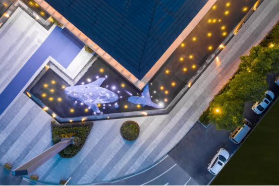 该景观设计项目延续鲸作为海洋主题IP,场地里每一次见"鲸",都是一种童稚的、充满想象的互动。展示区将作为大区的入口永久留下,因此,回归生活的亲和与舒适,浪漫与活力,才是设计的目的。