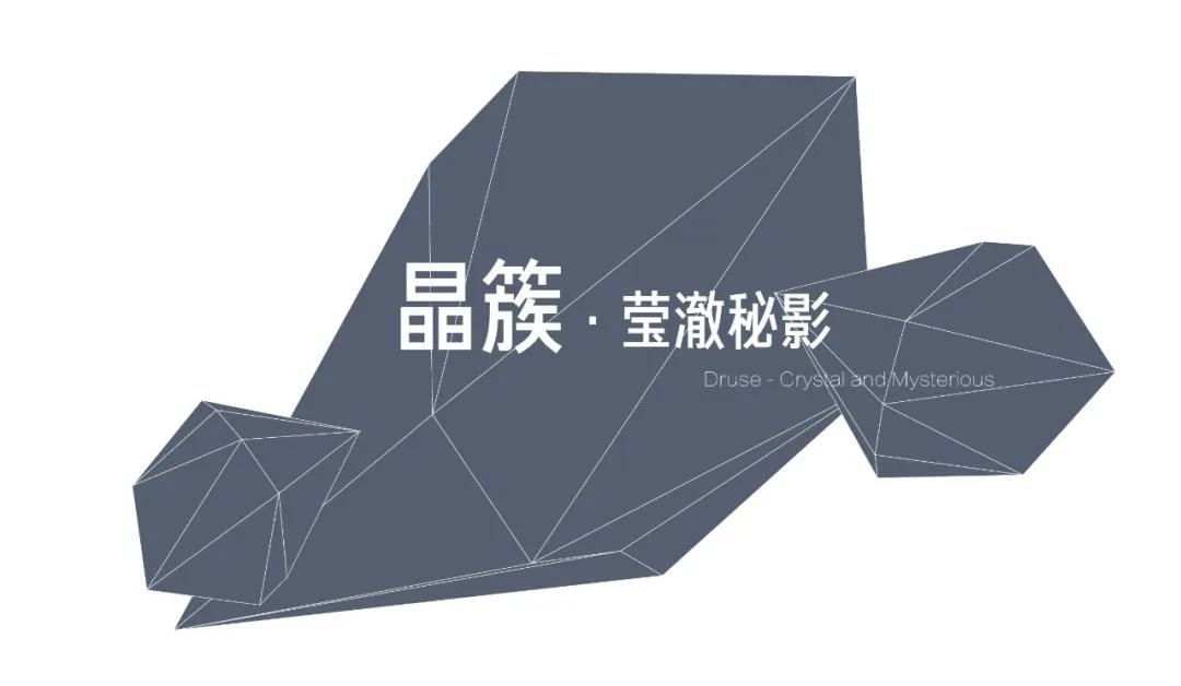 结晶完美的水晶呈六棱柱状,多条长柱体连结在一块,通称晶簇,美丽而壮观,设计师由此获得灵感,将晶簇的几何形态、切割与通透感演绎于入口。