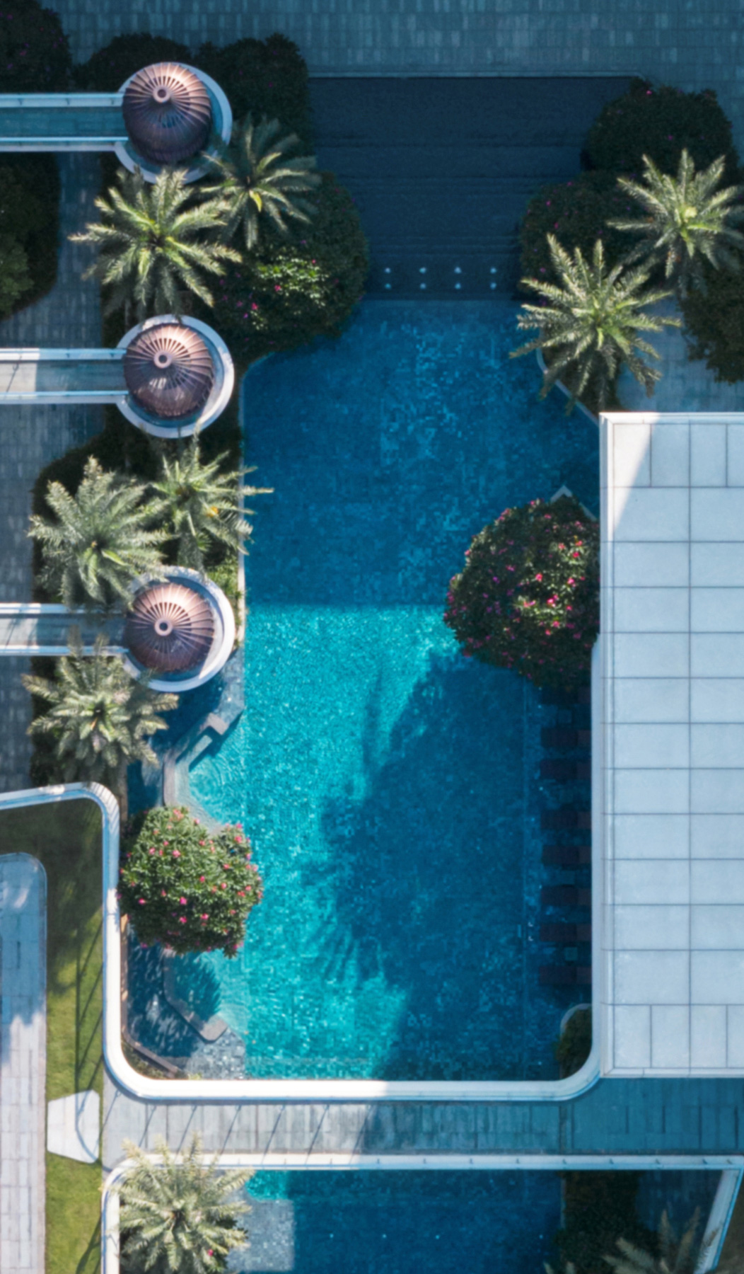 泰国进口的石英岩“蓝色天空”打造的下沉式无边际泳池,感受看得见的隐奢精致品质。