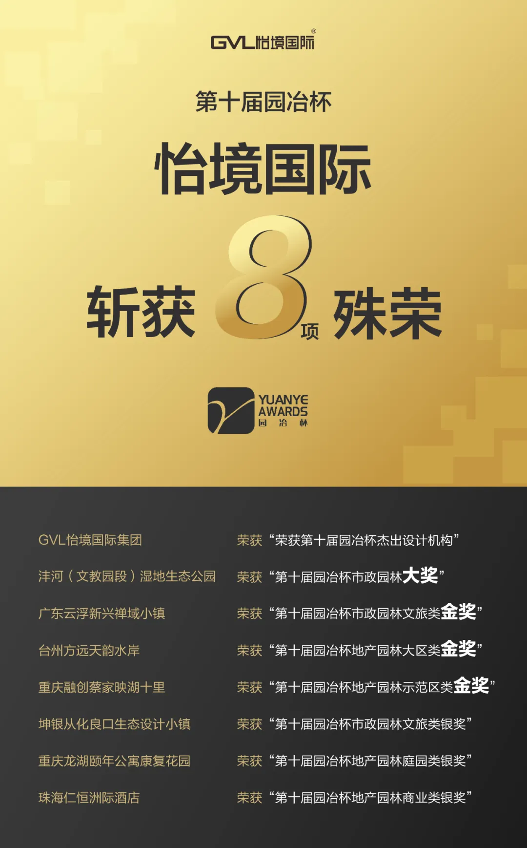 2020年7月4至6日,第十届园冶高峰论坛暨颁奖盛典在线上举行,怡境国际斩获杰出设计机构、市政园林大奖及三金三银八项殊荣。