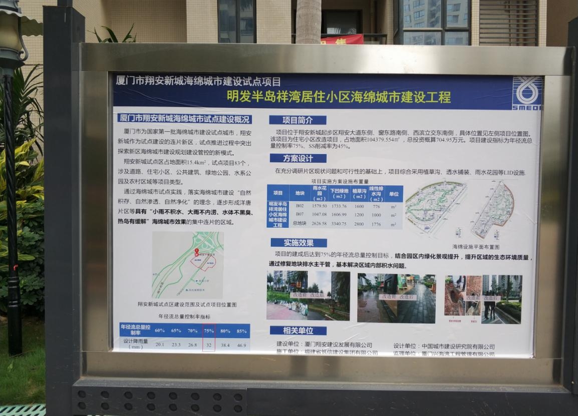 当下海绵城市建设正如火如荼地进行中,居住区的海绵项目涉及人员最多,影响范围最广,其中既有住区的海绵改造问题更复杂,需要更加适宜的改造策略才能顺利推进。本文以厦门明发半岛祥湾A区海绵改造研究对象,主要从改造后居民的使用评价角度作为出发点,采用问卷调查、实地调研及文献资料调研的方法,总结目前既有小区海绵改造存在的问题,并探讨既有小区海绵改造的优化策略,为住区海绵城市建设提供借鉴。2案例实践
